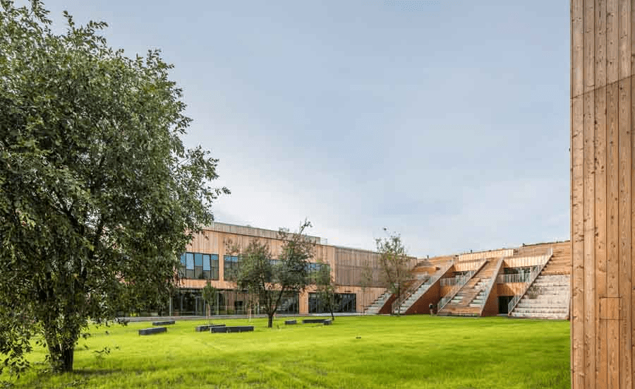 Zajęcia w szkole odbywają się najczęściej w salach lekcyjnych, ale wygodne miejsca na dziedzińcu dają również możliwość nauki na świeżym powietrzu. Główną ideą tego podejścia jest to, aby dzieci chciały spędzać czas w wygodnej dla siebie przestrzeni nawet po lekcjach.