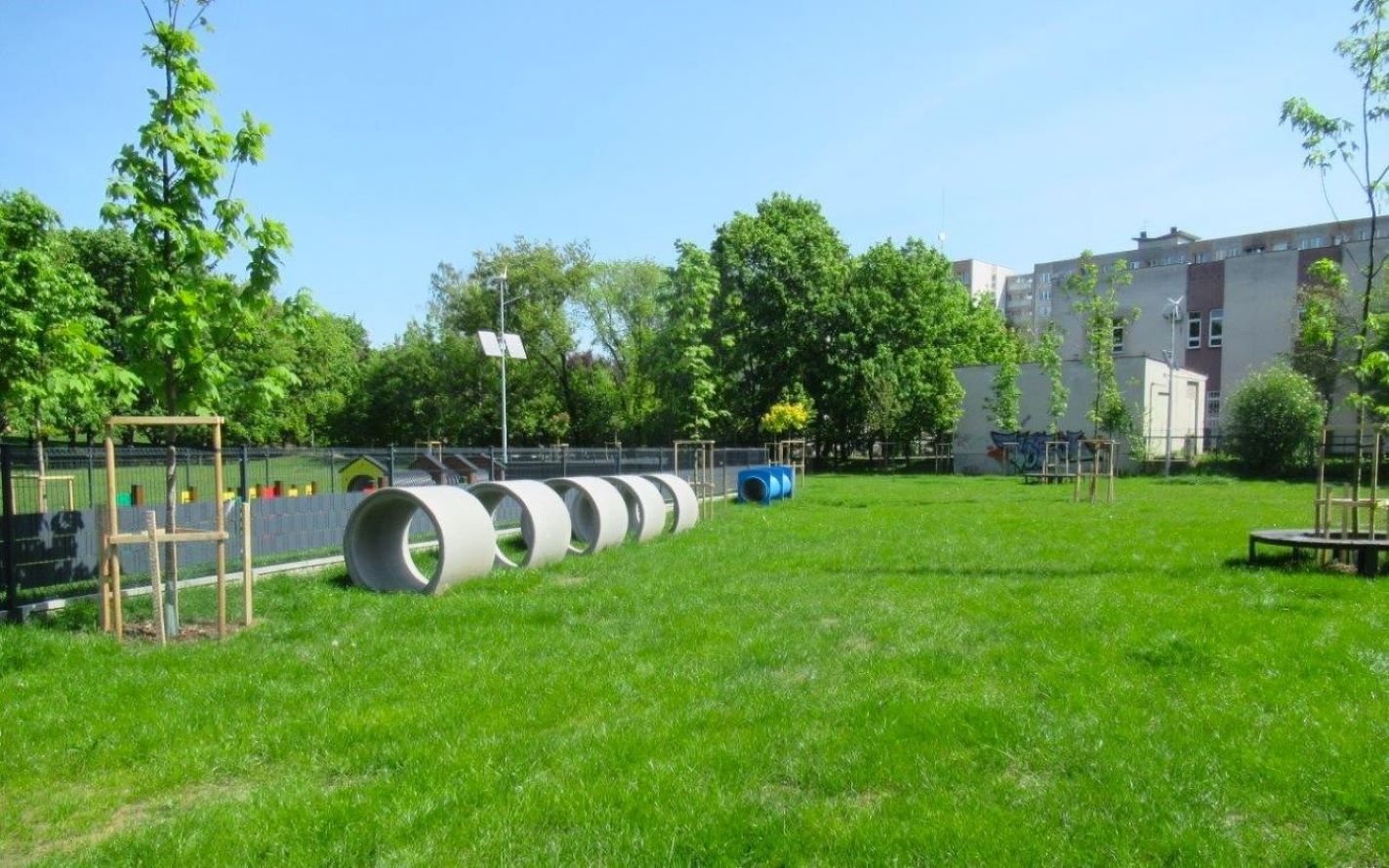 В парке «Гурчевская», расположенном в варшавском районе Бемово, есть популярное место для выгула собак. Это не просто площадка с ограждением, а комфортное пространство для активностей, тренировок и общения животных. Территория площадью более 1200 м² разделена на две зоны: