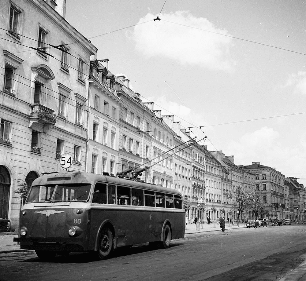 У січні 1946 року у Варшаві на маршрут виїхав довгоочікуваний тролейбус. Це була урочиста подія для містян. Цей захід очолив президент Польської Народної Республіки Болеслав Берут.
