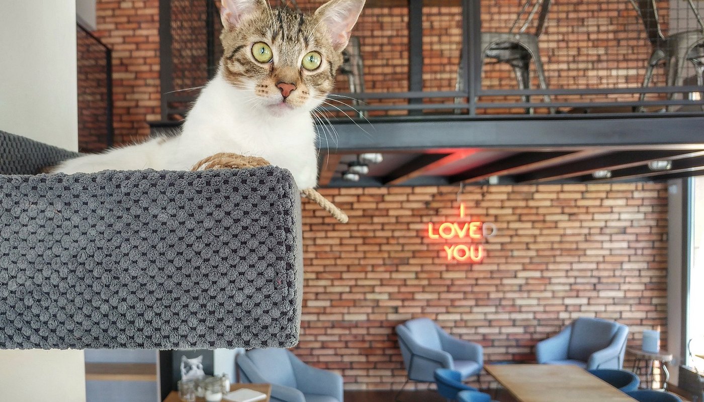 Чотирилапі відповідають за створення атмосфери затишку та умиротворення. У понеділок у котиків вихідний. Відвідувачі кафе мають з повагою ставитися до тварин. Вхід до зони з котами дозволений лише особам від 12 років.